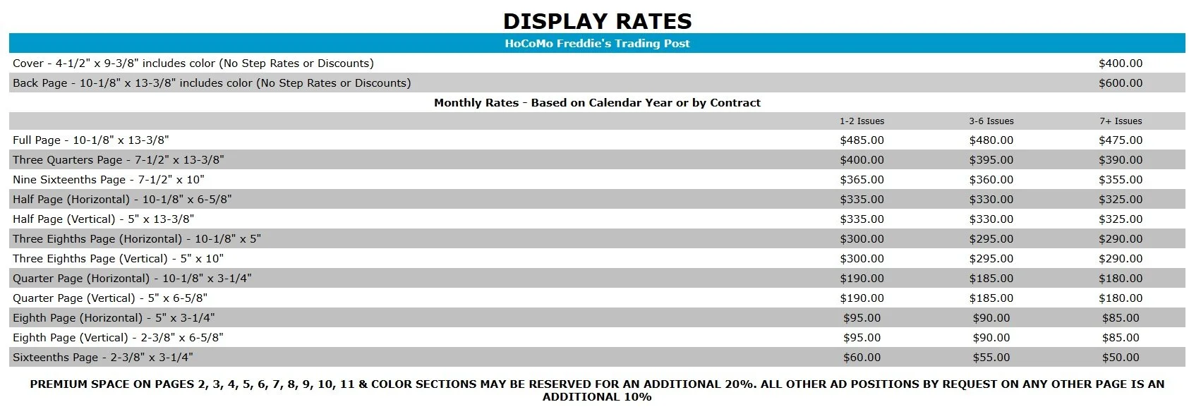 DISPLAY ADVERTISING IS OFFERED IN TWO WAYS: 1) Contract 2) For specified issues or by stepped rate.