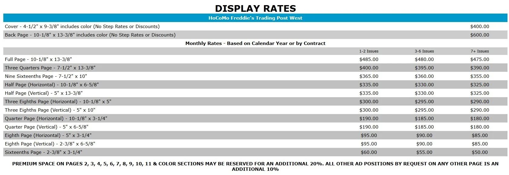 DISPLAY ADVERTISING IS OFFERED IN TWO WAYS: 1) Contract 2) For specified issues or by stepped rate.